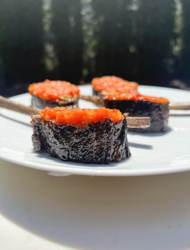 Liberally season the lamb loins with 1 tablespoon of kosher salt on all sides. Let it sit for 5 minutes to absorb the salt.